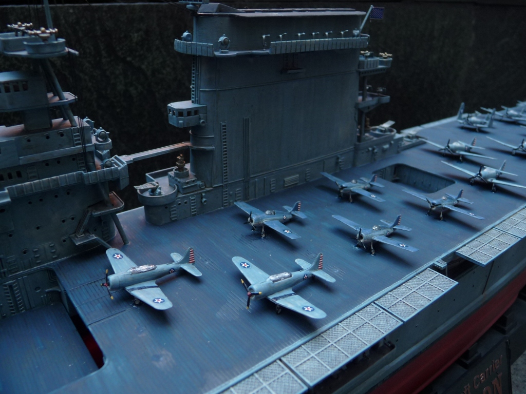 El enemigo atacó a los portaaviones estadounidneses a las 11:00, 20 minutos después, el Lexington se retiró alcanzado por un torpedo.